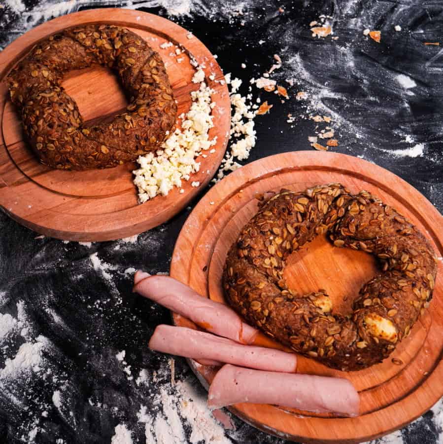 Ζύμη: Αλεύρι Σφολιάτας, Αλεύρι Δυνατό, Μαργαρίνη, Αλεύρι Ολικής, Ηλιέλαιο, Αλάτι, Νερό.