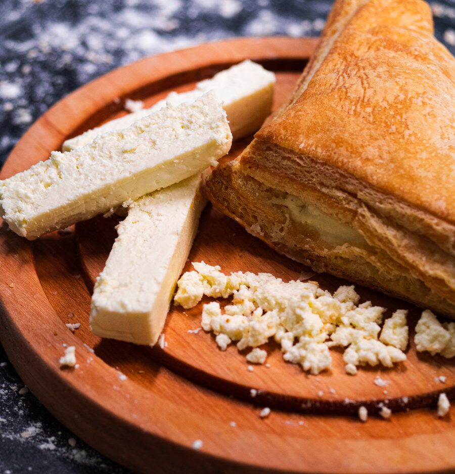 Γέμιση: Ημίσκληρο Τυρί Γκούντα, Κεφαλοτύρι, Σιμιγδάλι.