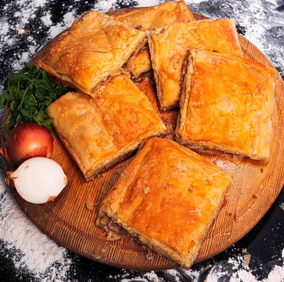 Γέμιση : Μυζήθρα, Αγελαδινό τυρί, Σιμιγδάλι, Ηλιέλαιο, Αλάτι, Πιπέρι.